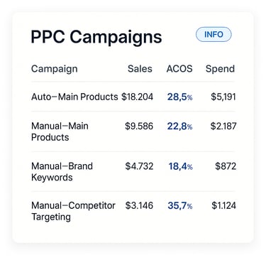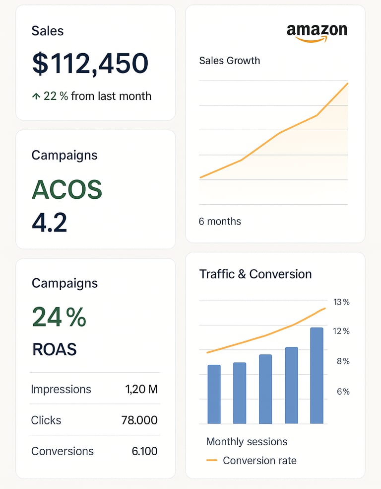 We had strong products but were stuck with flat sales. Their team stepped in, optimized our listings, and launched ad campaigns that actually worked. Within 2 months, we saw a 30% lift in sales - and the clarity in reporting made it easy to see exactly where the growth came from.